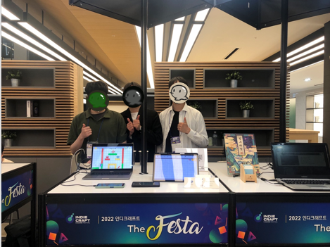 큰 규모로 성남시, 성남산업진흥원과 한국모바일게임협회가 주관하는 '인디크래프트 The Festa'가 5월 25일에 열렸습니다. 이에 참석을 하기 위해 저희 팀은 전날에 근처 숙소에서 머무르며 전시를 준비했습니다. 장난을 치며 긴장을 풀기도 하며, 전시를 보러 오실 분들을 위해 새로운 기능을 준비하기도 하였습니다. 투자자들과 미팅, 후원사들의 조언 등을 듣기 위해 질문들도 많이 준비했습니다. 지금 우리 팀에 필요한 부분은 무엇이며 부족한 부분을 어떻게 해결해야 할까 라는 고민도 많았기 때문에 철저하게 준비해서 25일에 참석을 하였습니다.